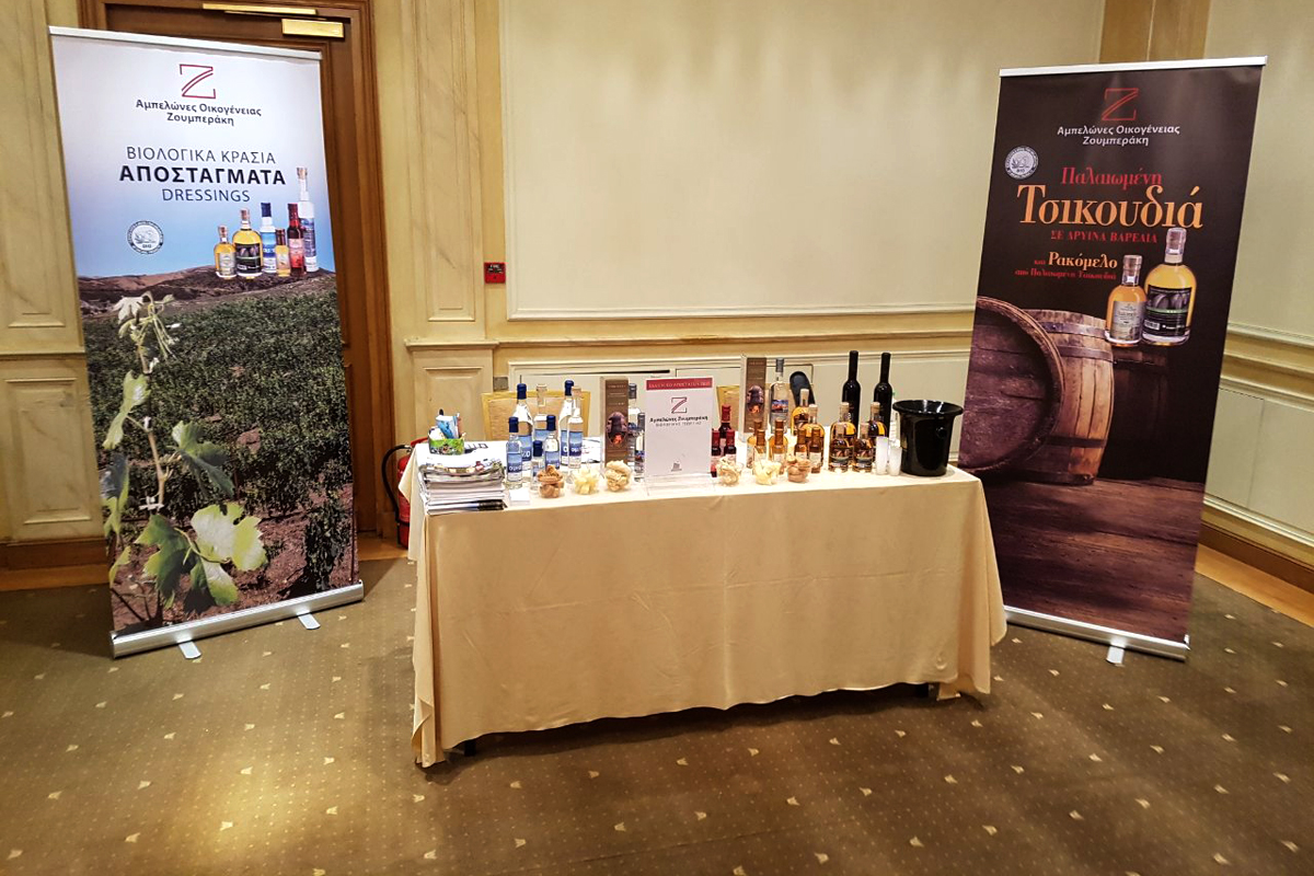 Τα προϊόντα του Οινοποιείου Ζουμπεράκη στις 10 Φεβρουαρίου 2019 είχαν την τιμητική τους. Το οινοποιείο μας συμμετείχε στην έκθεση ‘‘Ελληνικό Απόσταγμα’’ στην Αίγλη Ζαππείου και παρουσίασε τα δικά του εκλεκτά αποστάγματα.